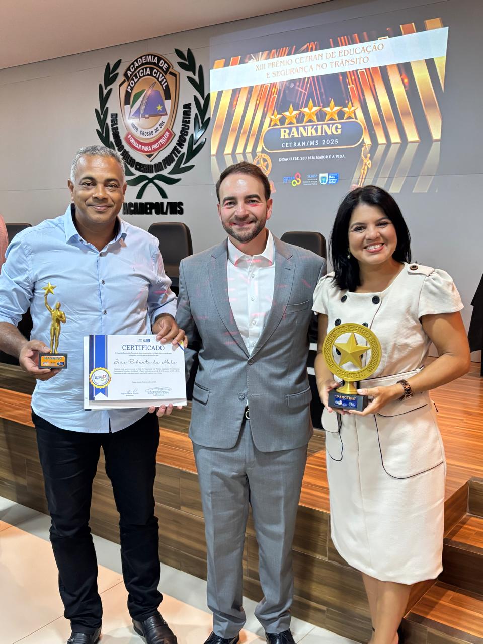 A premiação foi recebida no dia 05 de dezembro de 2025, em frente à Agência de Trânsito de Anaurilândia (AGETRAN), pelo Gestor Municipal de Trânsito, João Roberto de Melo, simbolizando o resultado positivo do trabalho desenvolvido ao longo do ano pela equipe da agência.