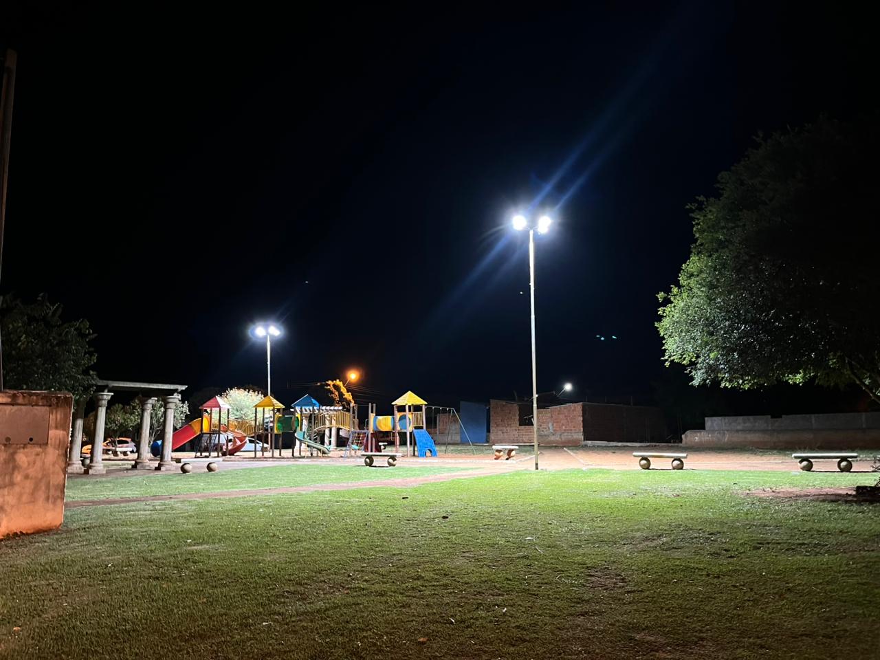 Com as intervenções já realizadas, praças que antes estavam em completa escuridão agora encontram-se devidamente iluminadas, possibilitando melhor aproveitamento desses ambientes pela comunidade, seja para caminhadas, práticas esportivas, momentos de lazer em família ou convivência social.